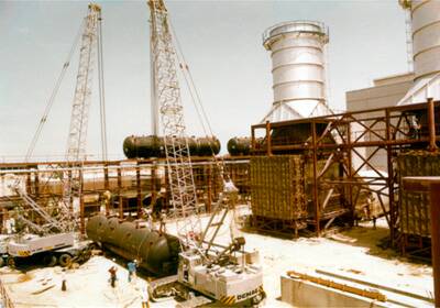 Die Kesselhäuser und DeNOx-Anbauten des neuen Kraftwerkes Reuter-West in Berlin Spandau