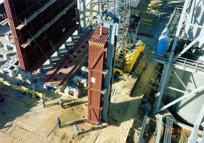 Die Kesselhäuser und DeNOx-Anbauten des neuen Kraftwerkes Reuter-West in Berlin Spandau
