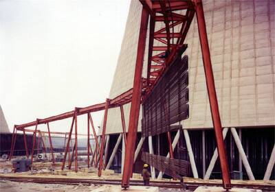 Die Kesselhäuser und DeNOx-Anbauten des neuen Kraftwerkes Reuter-West in Berlin Spandau