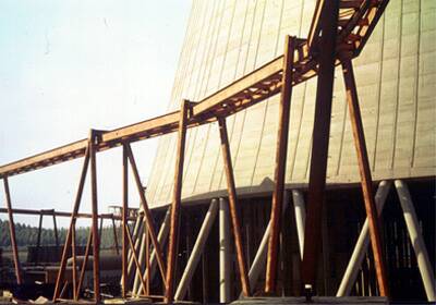 Die Kesselhäuser und DeNOx-Anbauten des neuen Kraftwerkes Reuter-West in Berlin Spandau